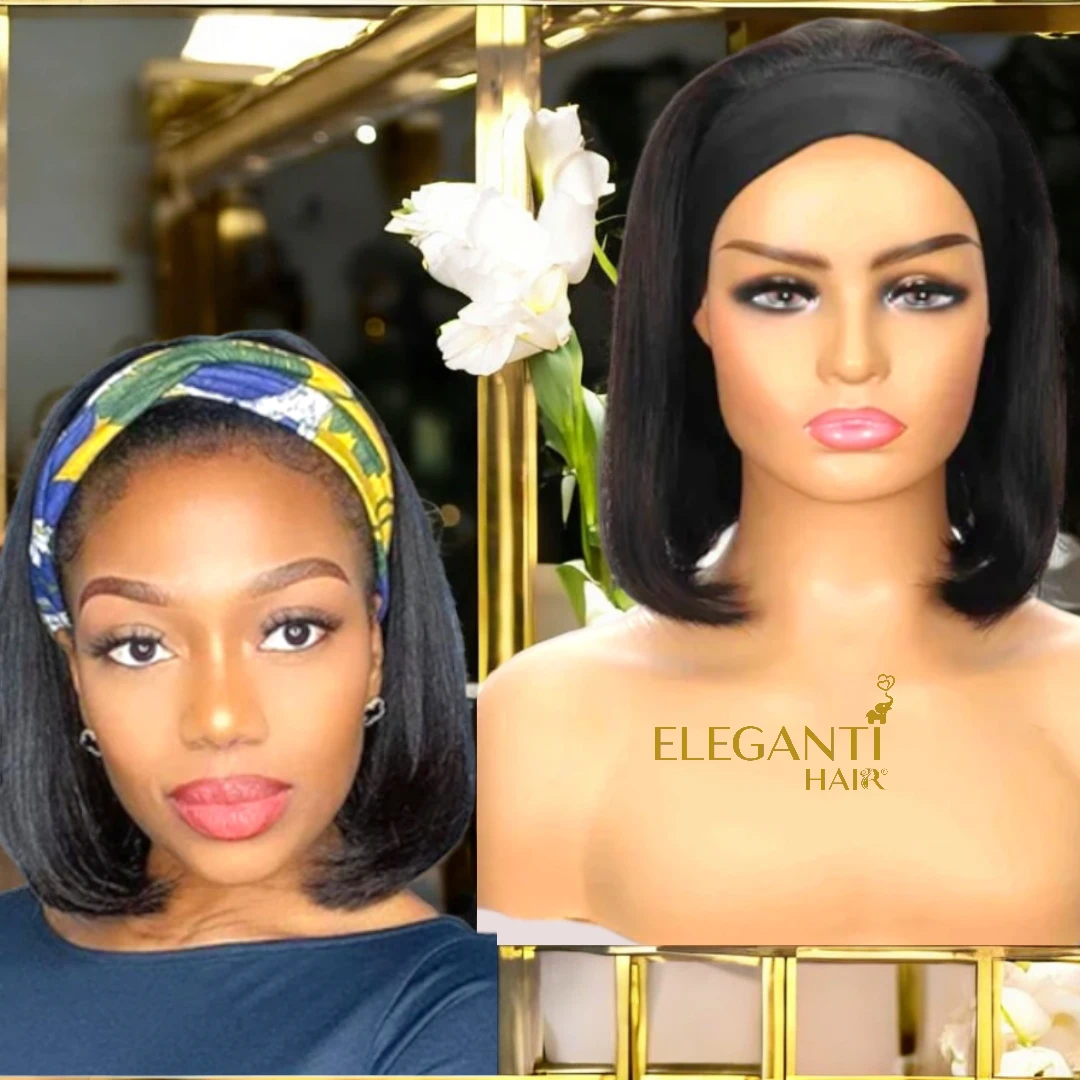 Découvrez notre perruque bob lisse naturelle avec bandeau headband pour un confort optimal et un style naturel impeccable. Cheveux naturels doux et faciles à coiffer.